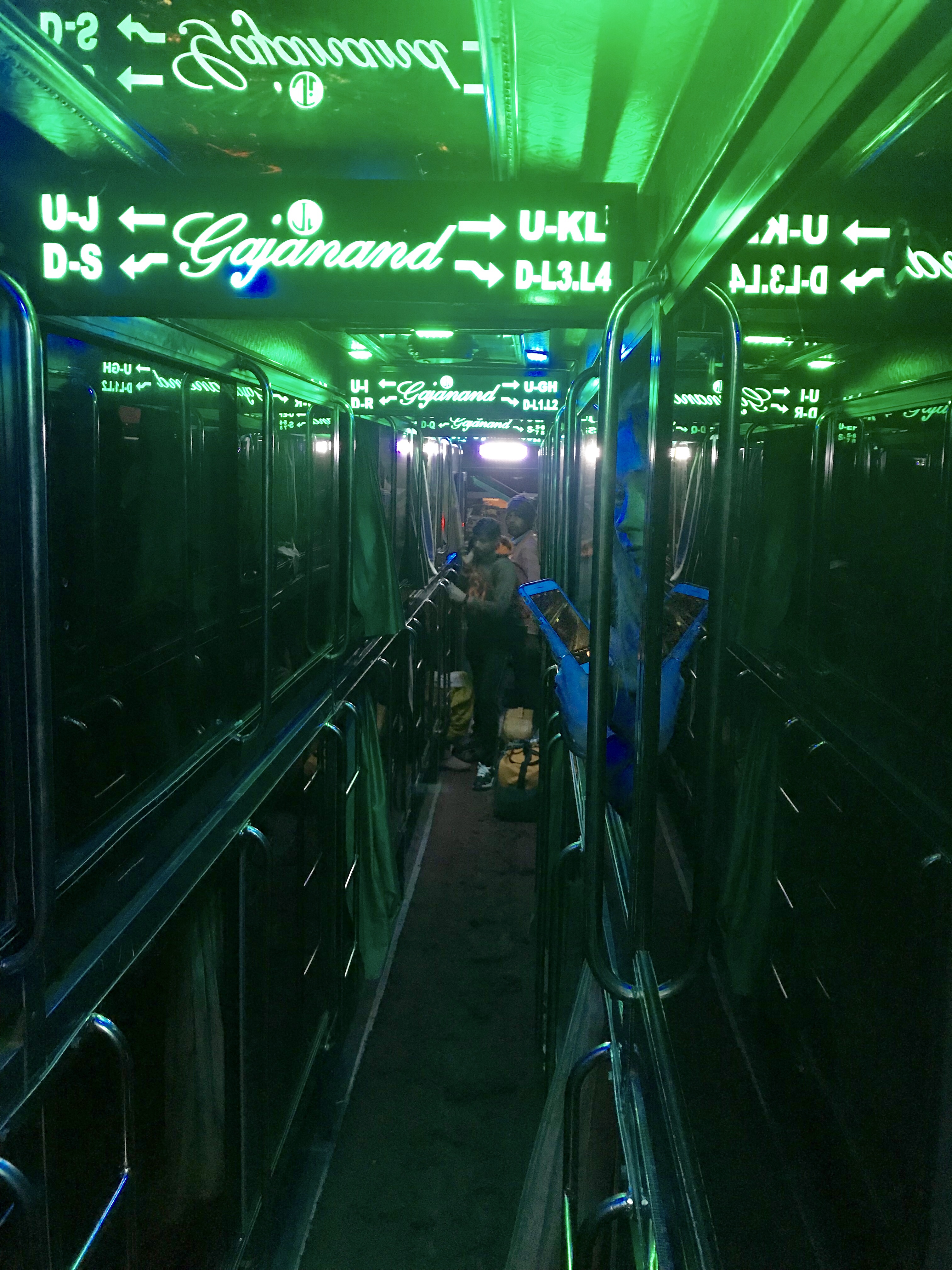 Départ en bus de nuit (qui a un look quelque part entre un casino et un peep show) pour Jaisalmer imminent. Durée: 12 heures ! Quel sera notre état à l'arrivée?