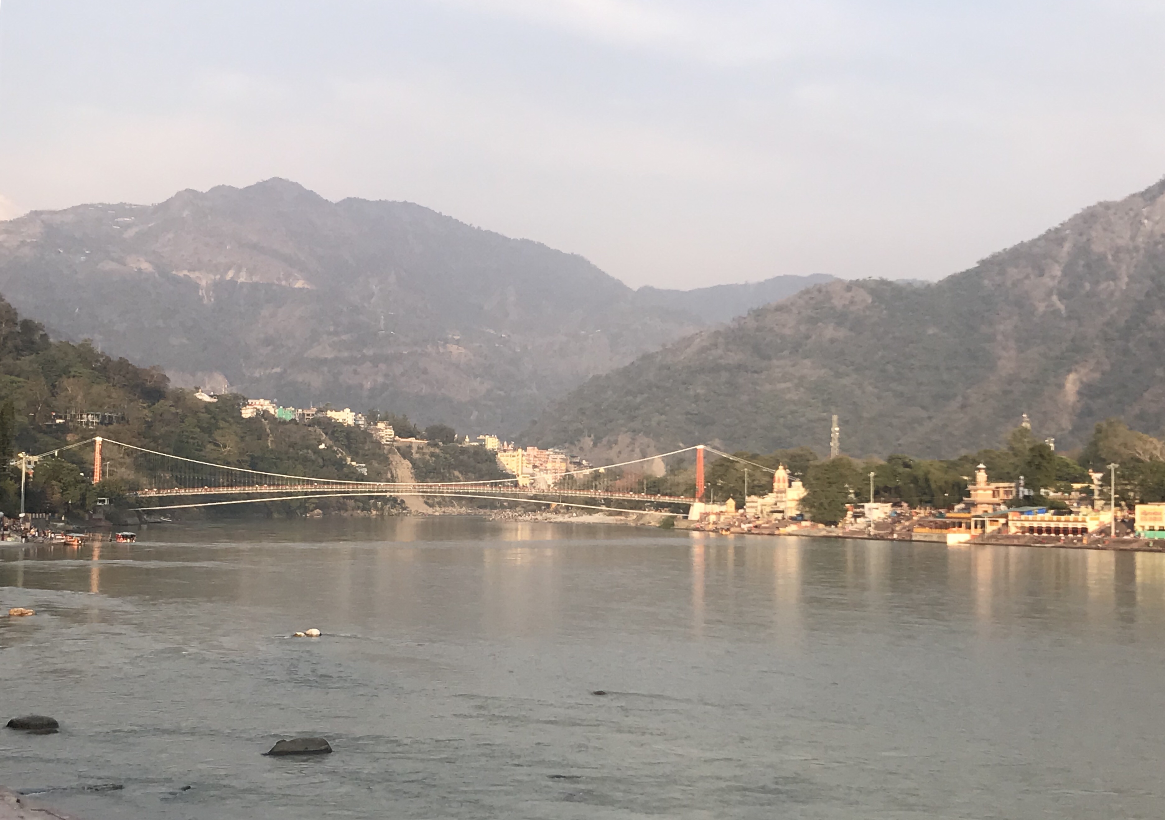 Rishikesh est un village qui borde le Gange mais le fleuve est ici bien différent de ce qu'il est à Varanasi car nous sommes plus près de sa source est il est conséquemment moins pollué et l'eau est plus vive. Le rafting est d'ailleurs une activité prisée ici ainsi que quelques autres activités extérieures.