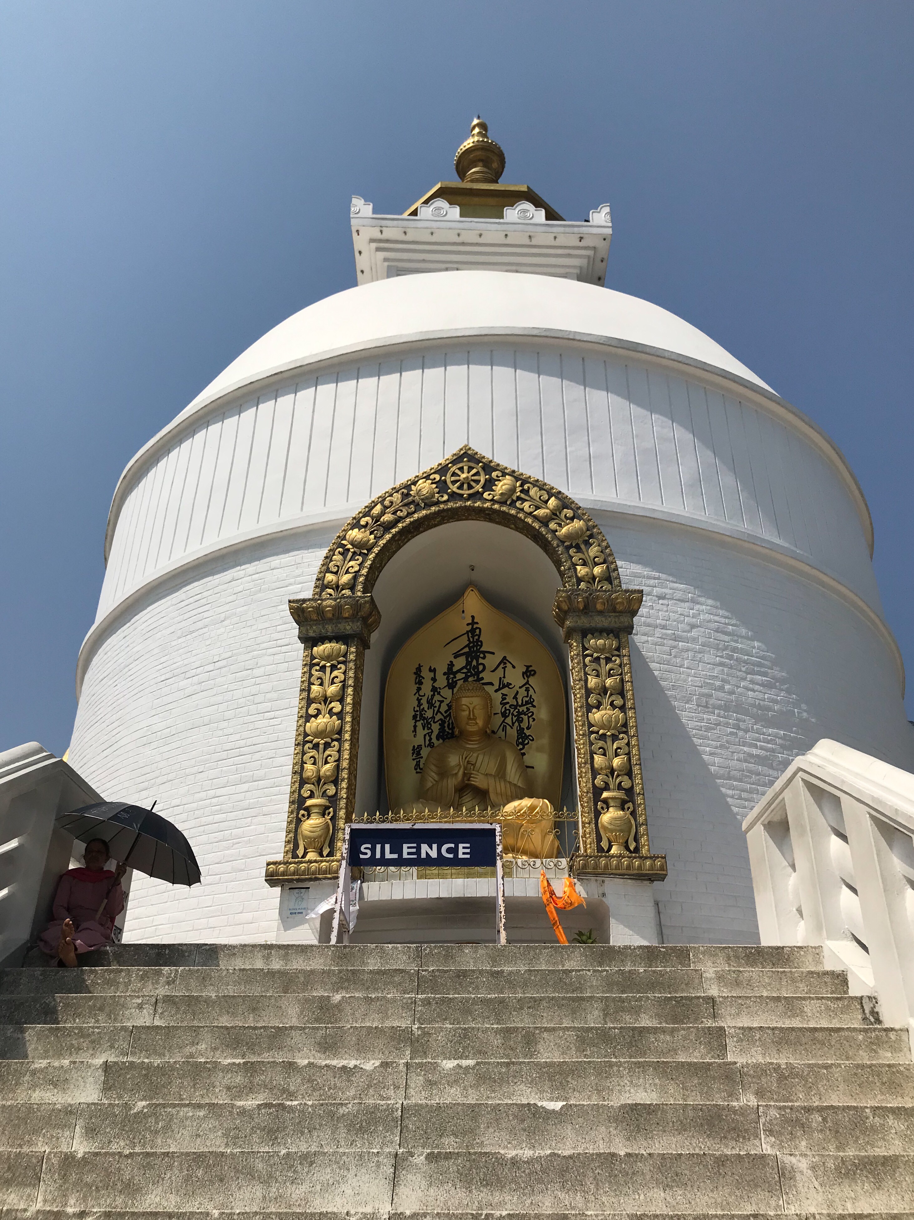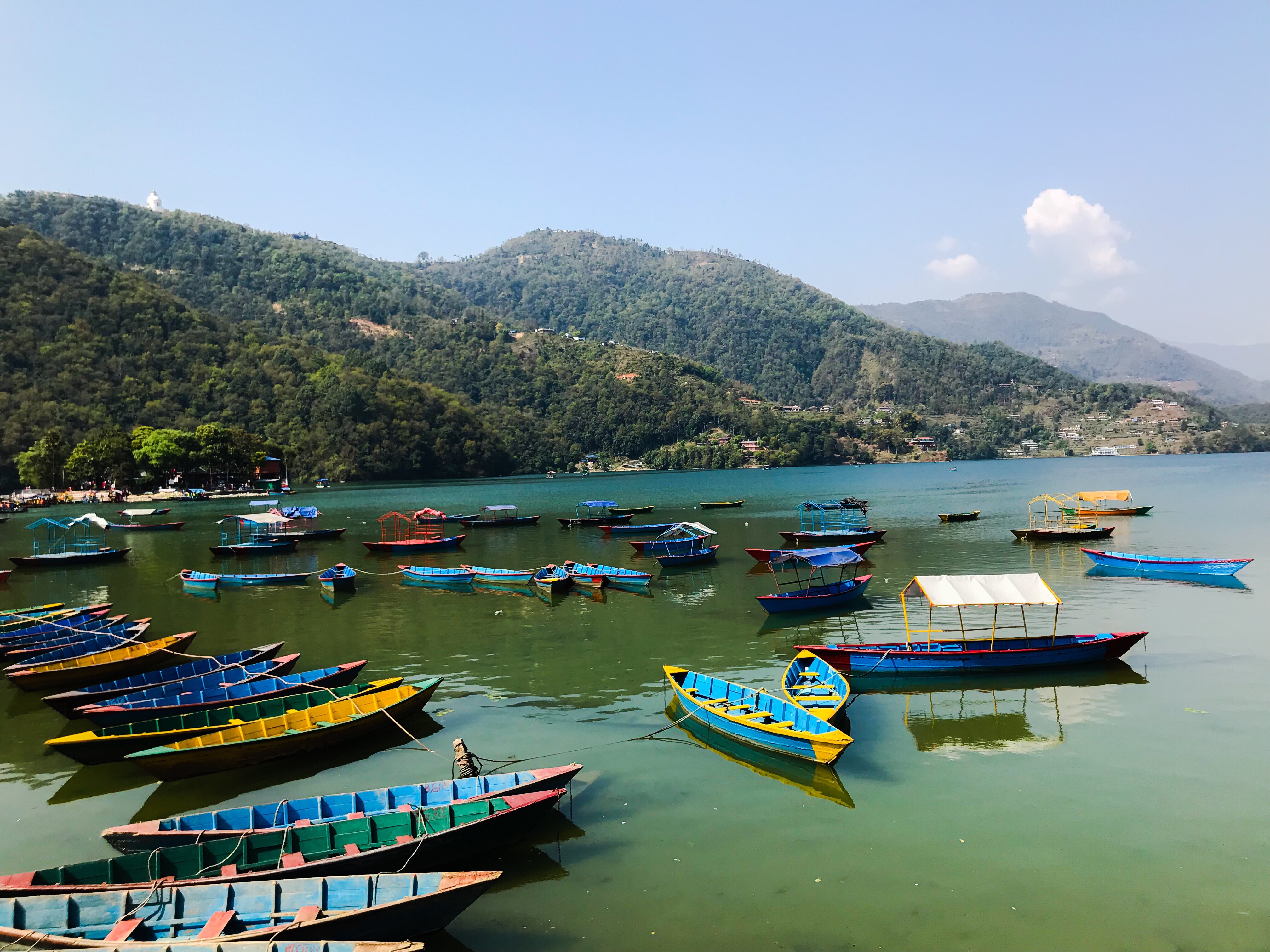 Lors de notre première journée, avec Mauricio, nous avons loué une barque pour traverser le lac et entreprendre l'ascension de la colline sur la rive opposée où se situe la "Pagode de la paix", petit temple (ou "stupa") qui offre une magnifique vue sur le lac et la ville mais aussi sur la chaîne des Annapurna au nord.