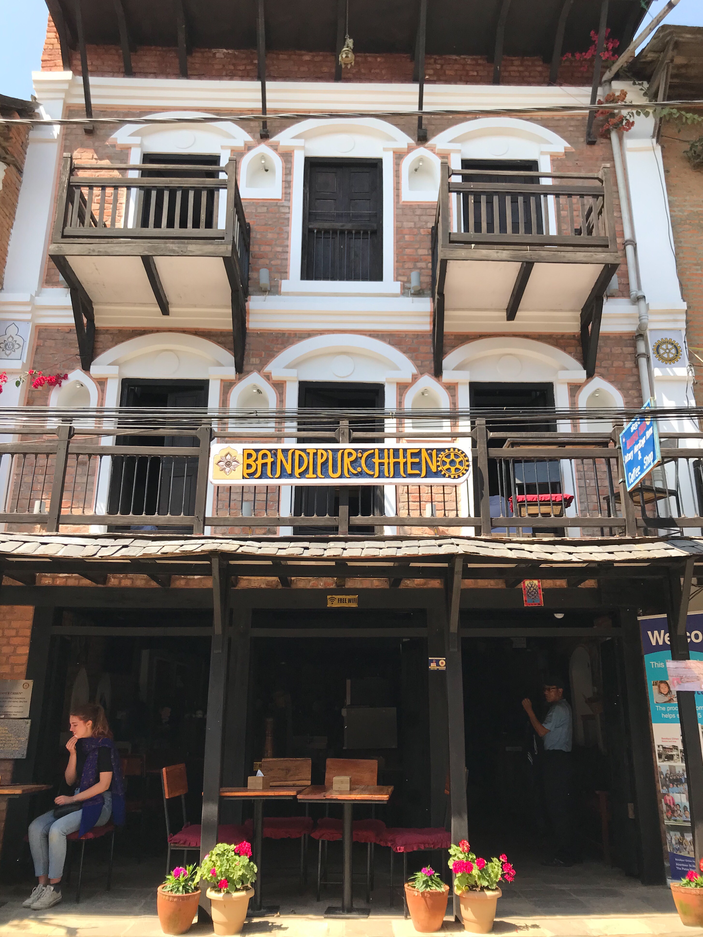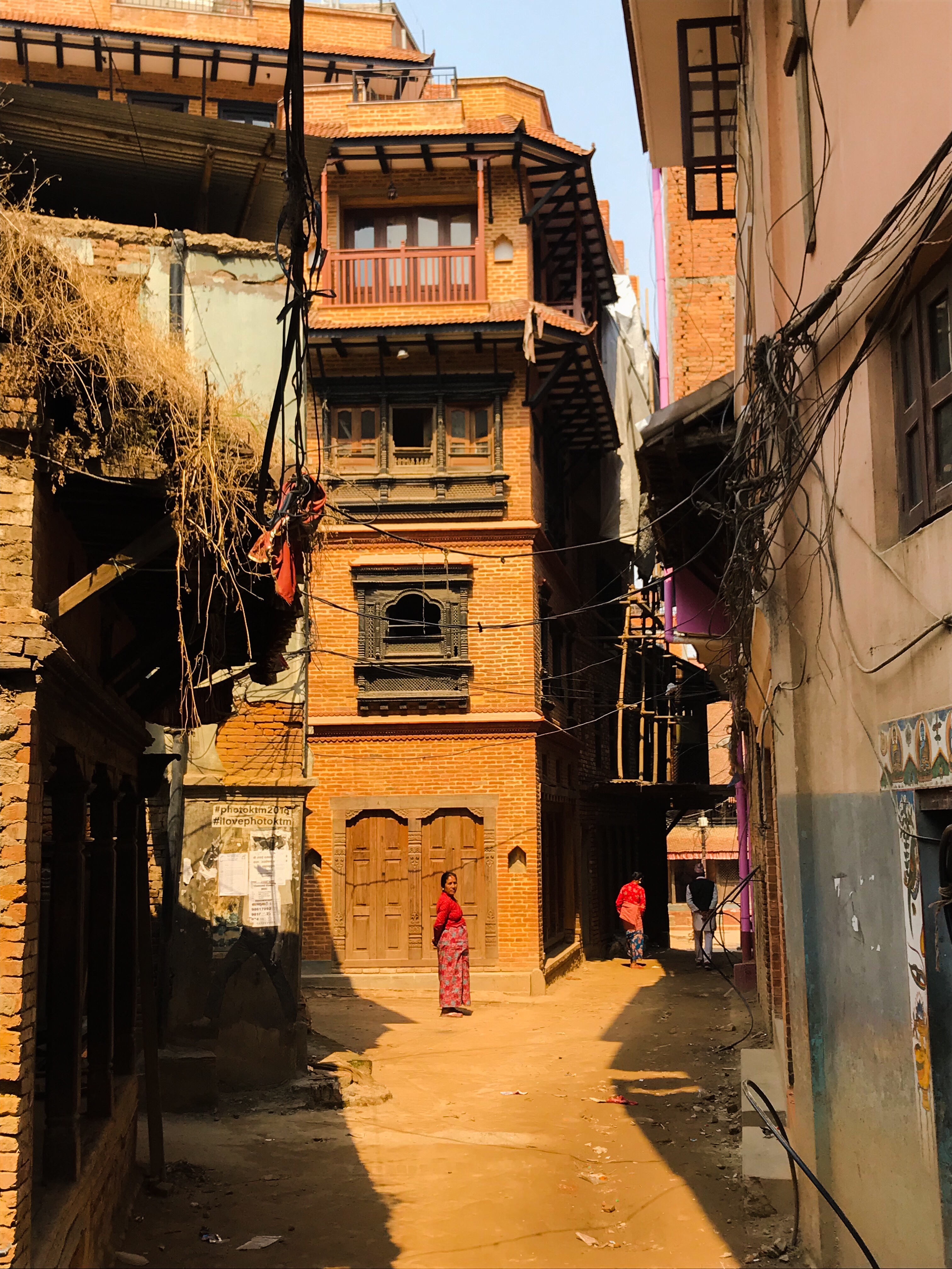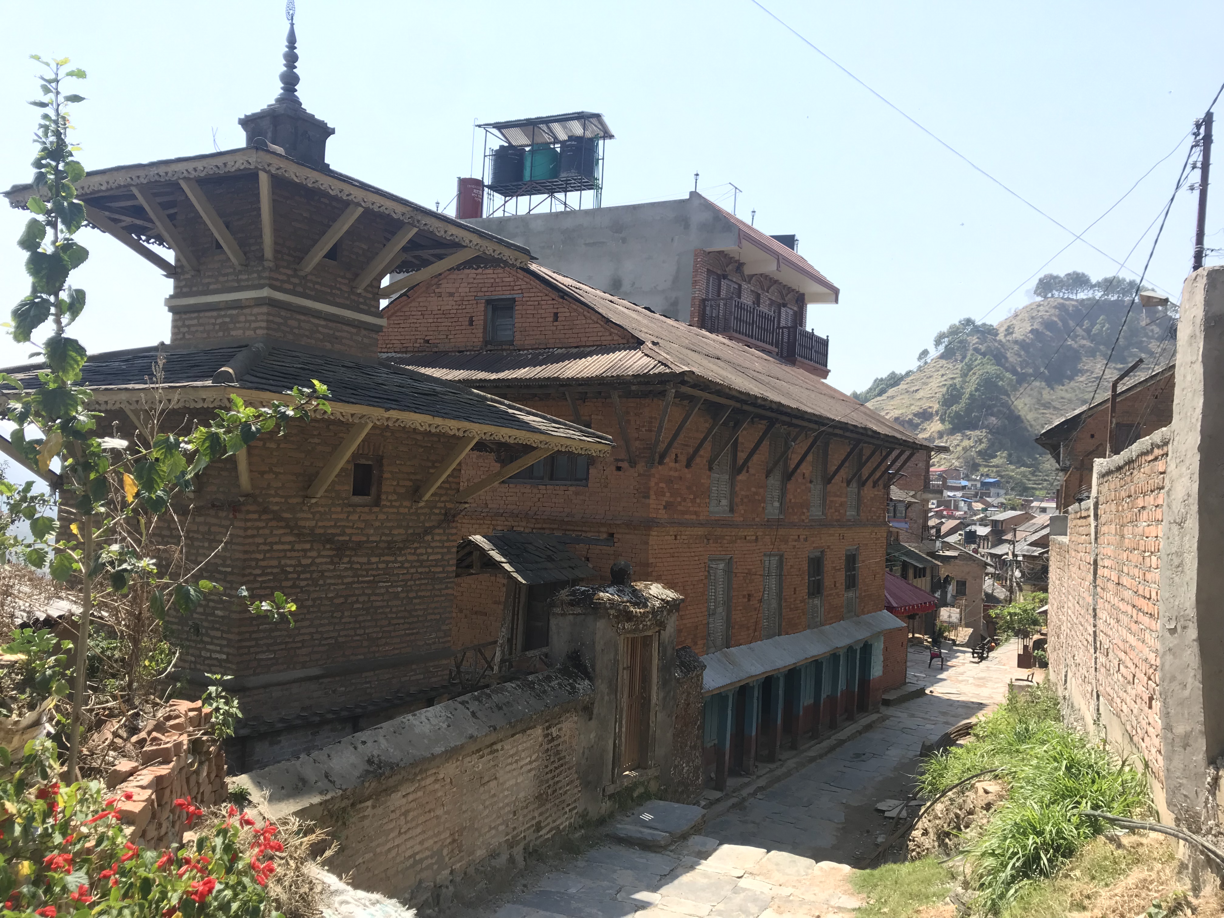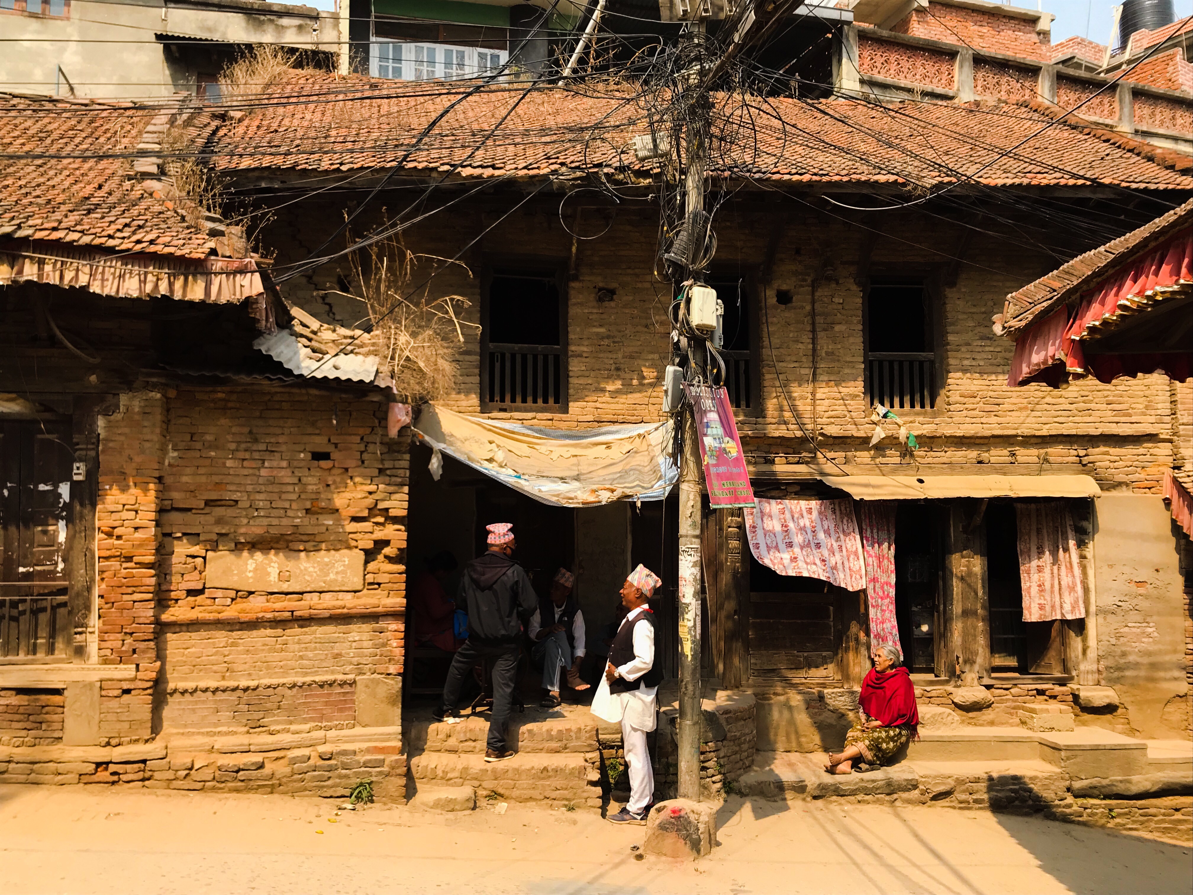 Nous n'avons donc fait aucune activité particulière mais nous nous sommes promenés dans le petit village qui est un curieux mélange de ville médiévale et de village Western... L'architecture est atypique pour le Népal et les structures sont d'un mélange de bois et de brique. Plusieurs constructions portent encore les marques du tremblement de terre de 2015, comme à Katmandou.