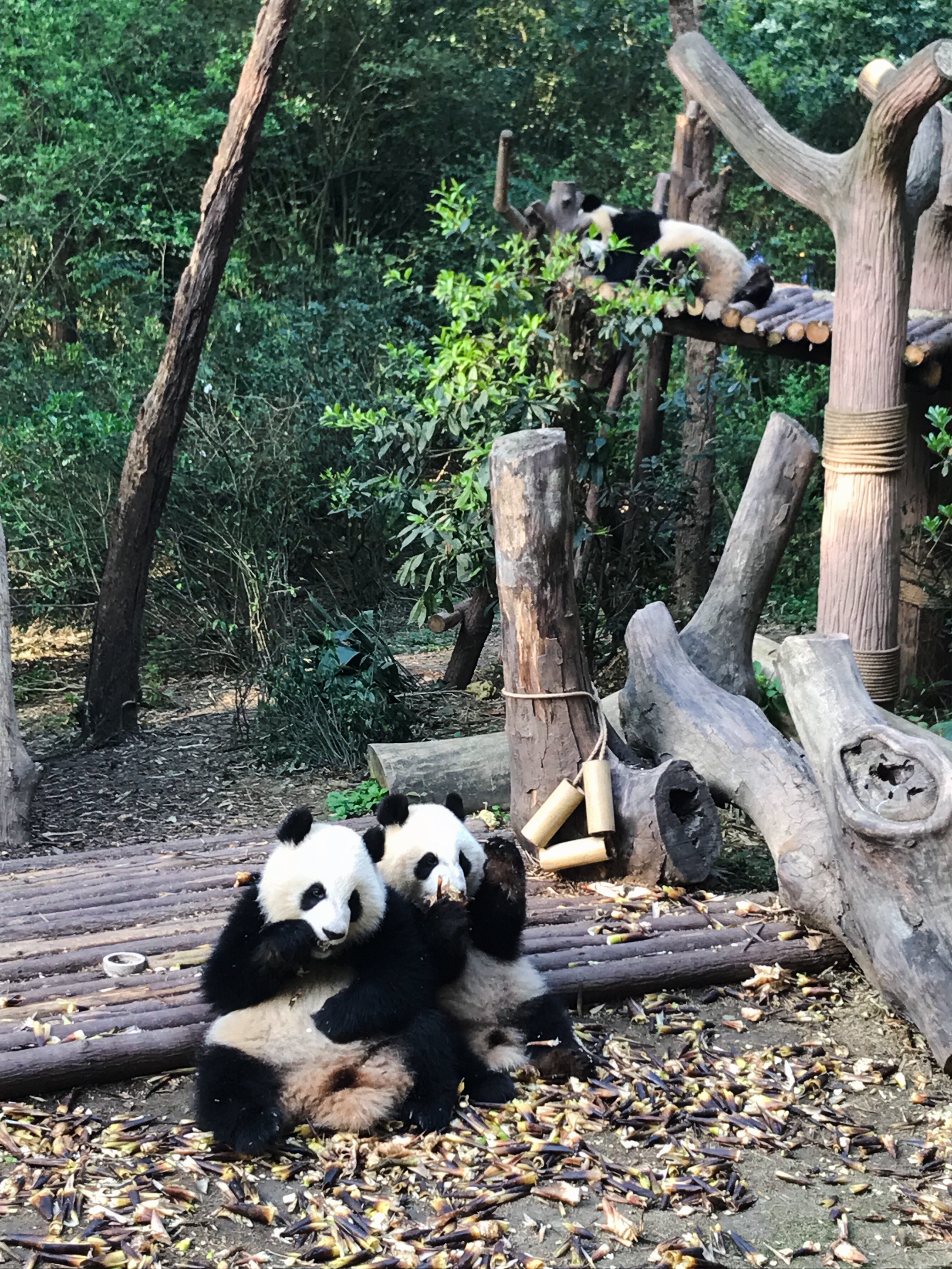 Le centre est en fait un grand parc très bien joli où des sentiers nous promènent à travers des boisés de bambous qui hébergent des enclos où les pandas peuvent évoluer sous les regards de la foule mais avec la possibilité d'une relative intimité.