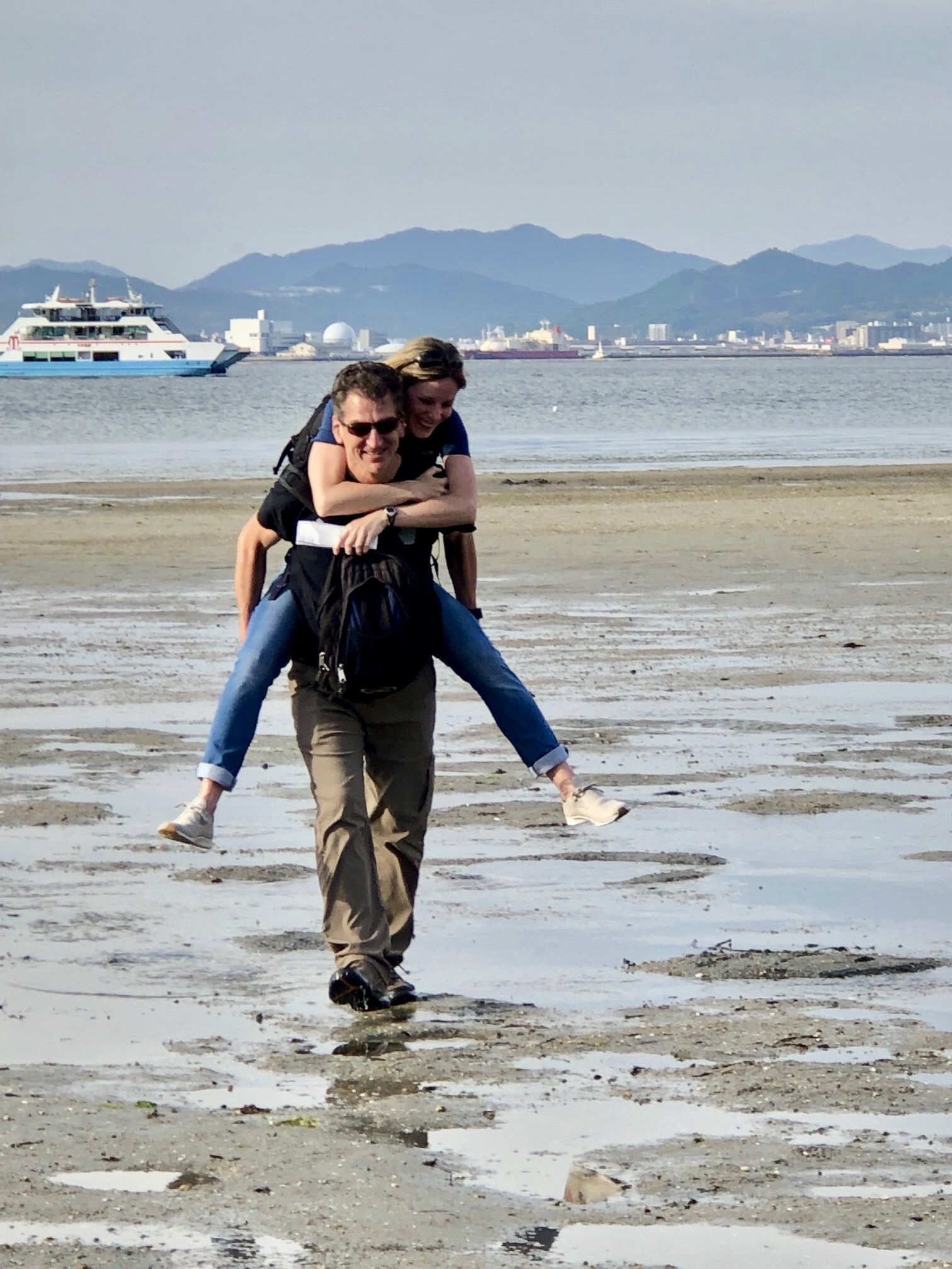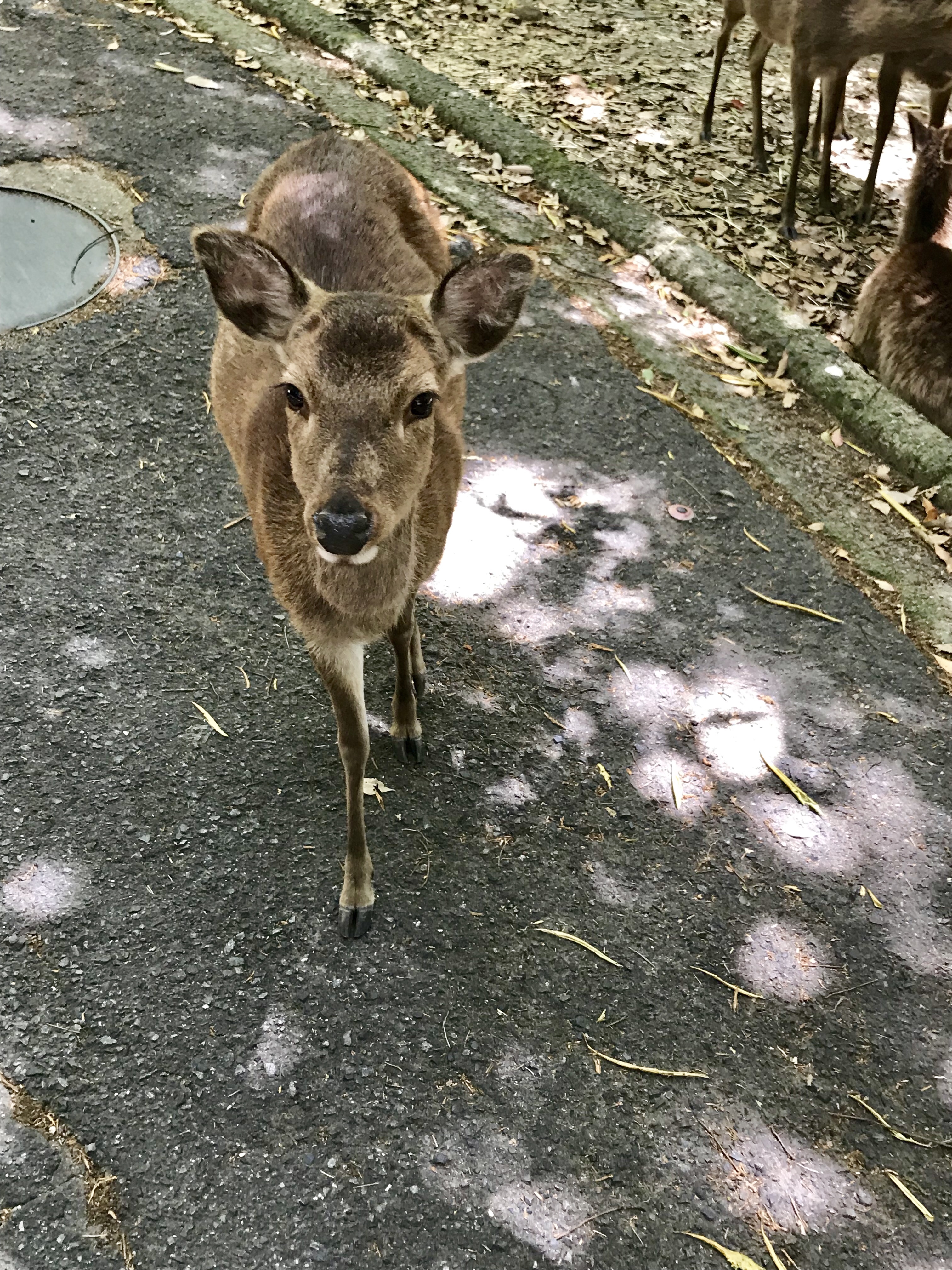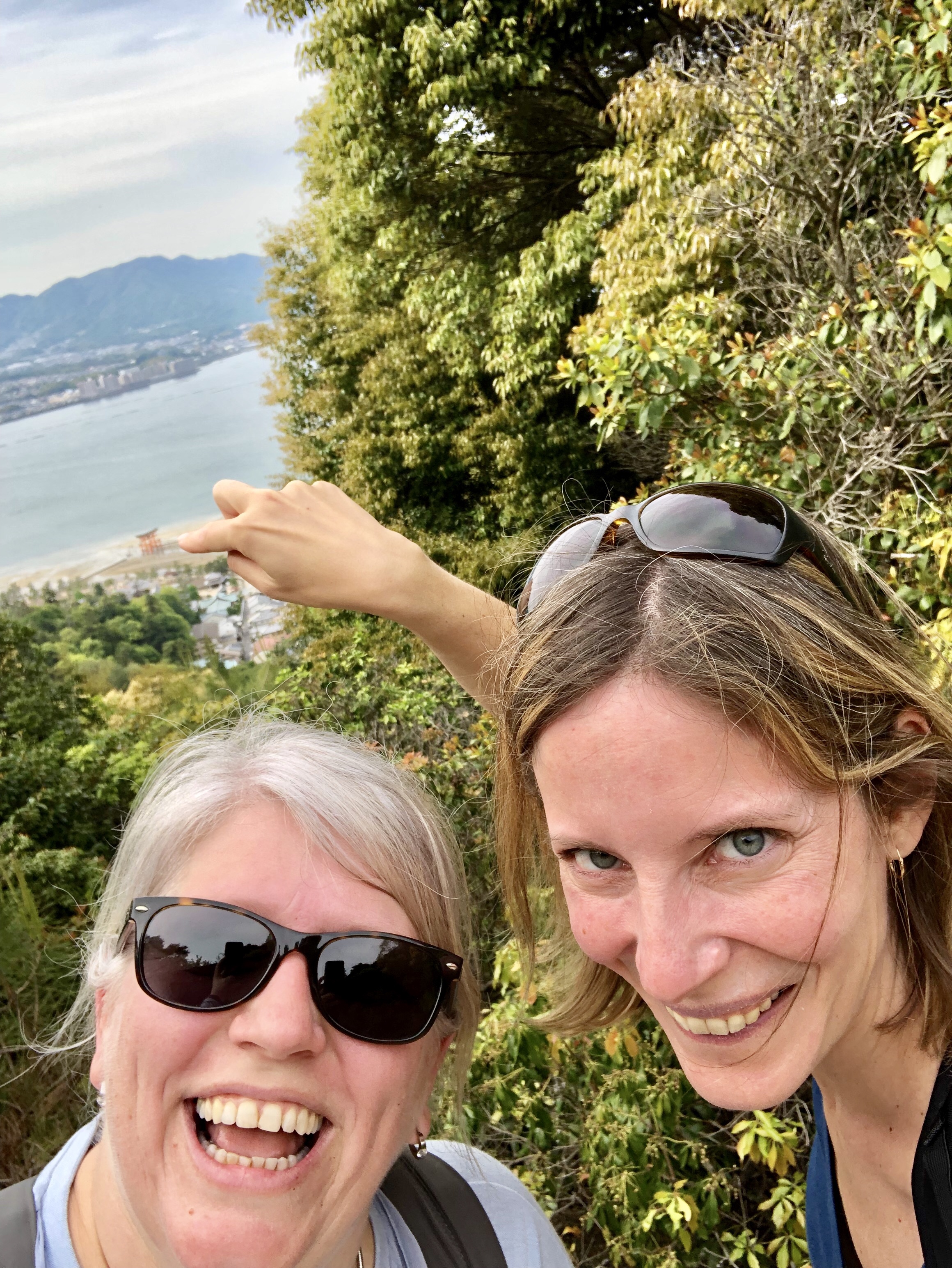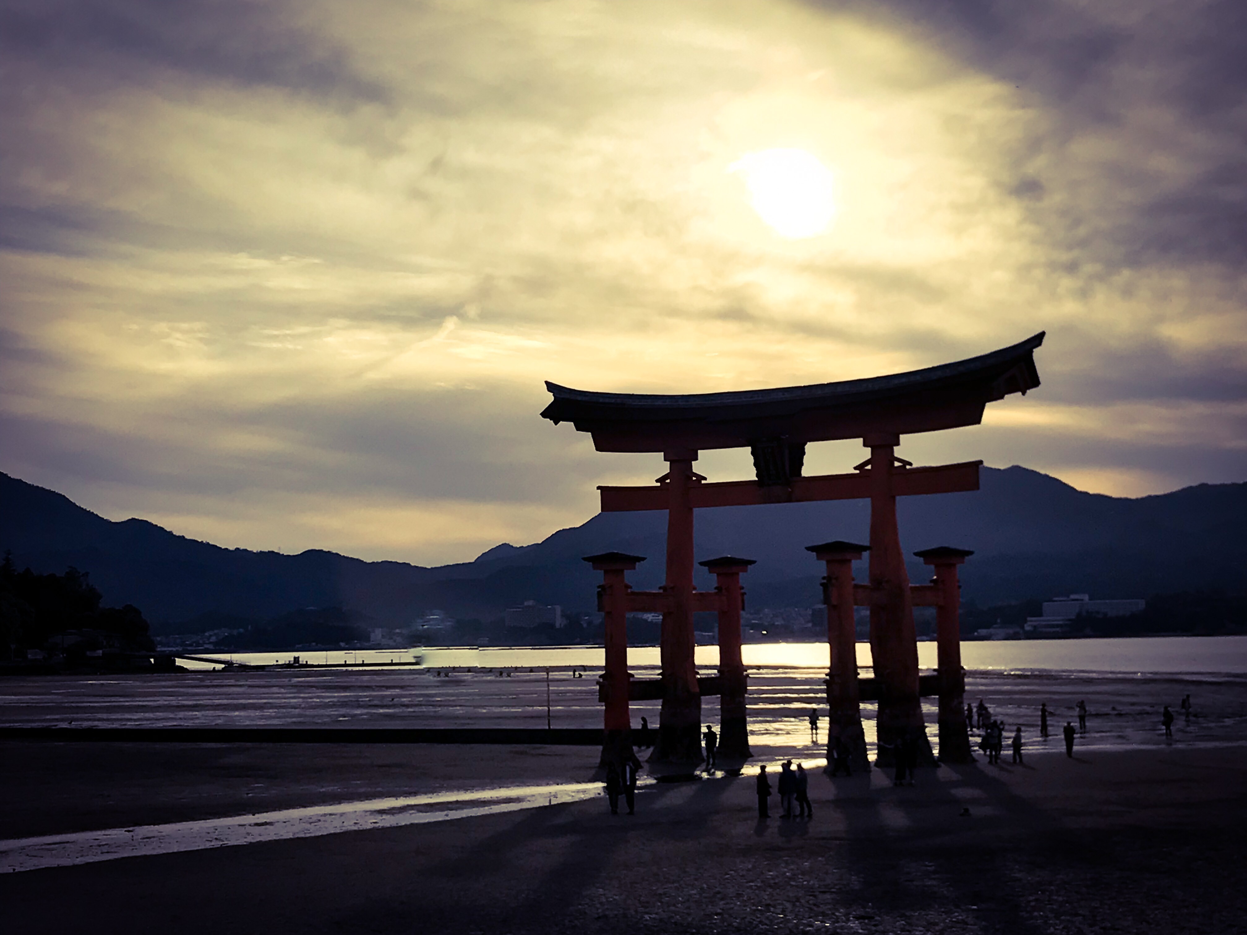 L'île est parcourue de sentiers pédestres qui s'enfoncent dans une forêt hébergeant des cerfs peu farouches. Nous en avons profité pour faire l'ascension du mont Misen, nous arrêtant pour pique-niquer en chemin. Une belle et exigeante randonnée qui nous aura ramenée au village pour le coucher du soleil, dans la baie où le torii resplendissait sous la lumière de cette belle fin de journée.