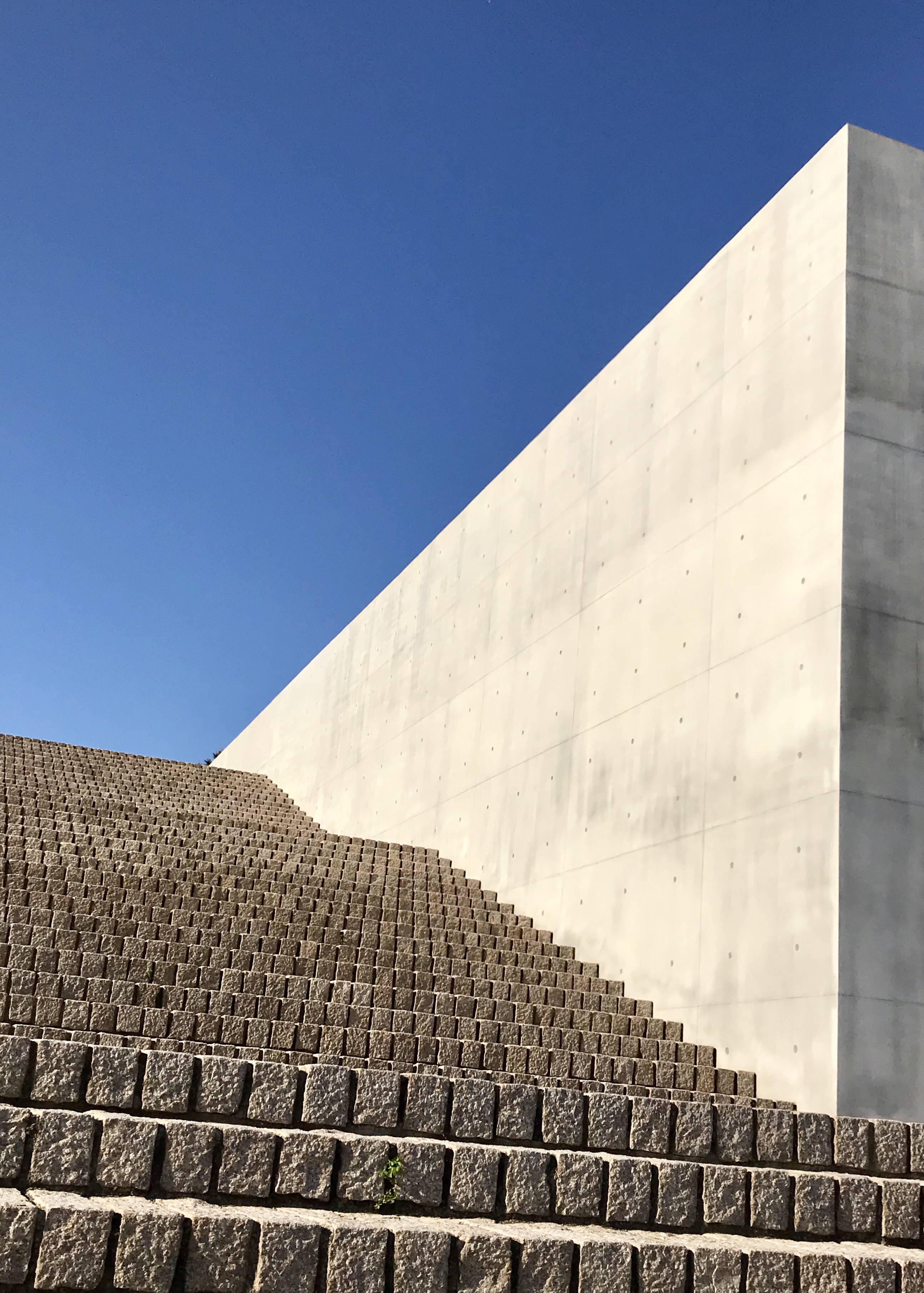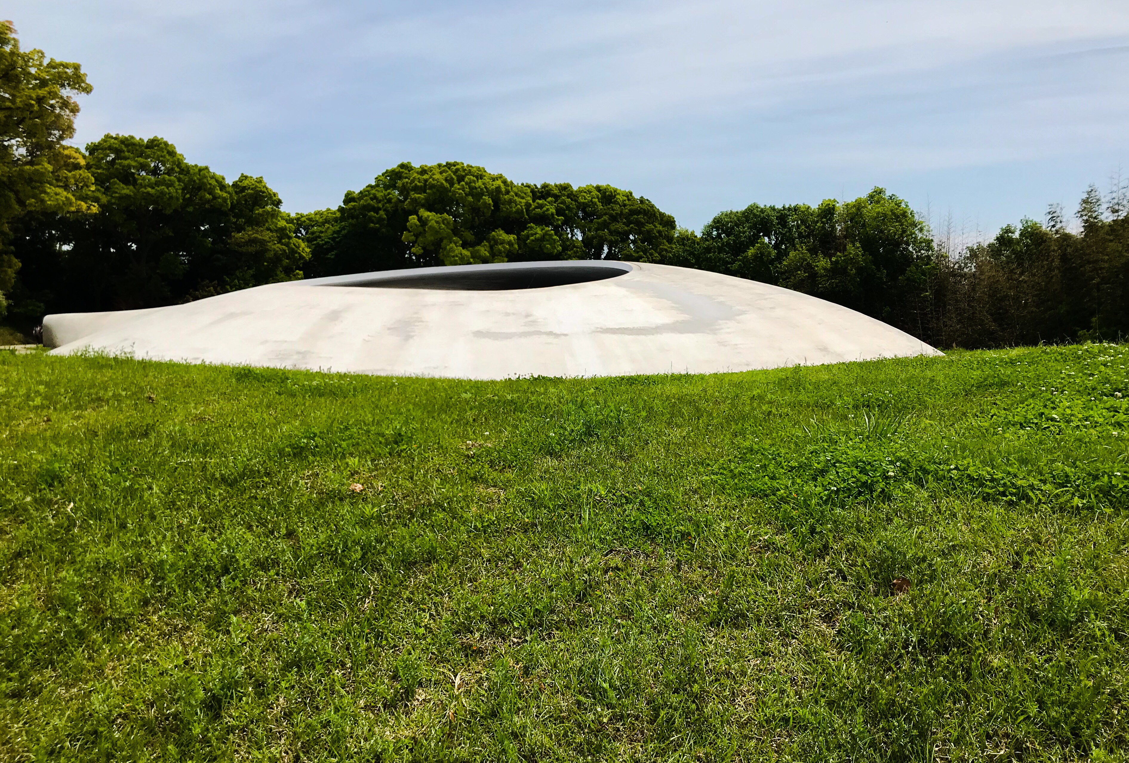 Le lendemain de notre arrivée, nous avons traversé à Teshima où le clou de notre visite aura certainement été le Teshima Art Museum qui propose une installation d'une simplicité désarmante mais d'une grande beauté. Essentiellement, le visiteur entre sous un grand dôme en béton dont le sol, couvert d'une fine couche hydrofuge, laisse percoler de petites gouttes d'eau qui glissent, se joignent et forment les flaques sur la surface bétonnée.