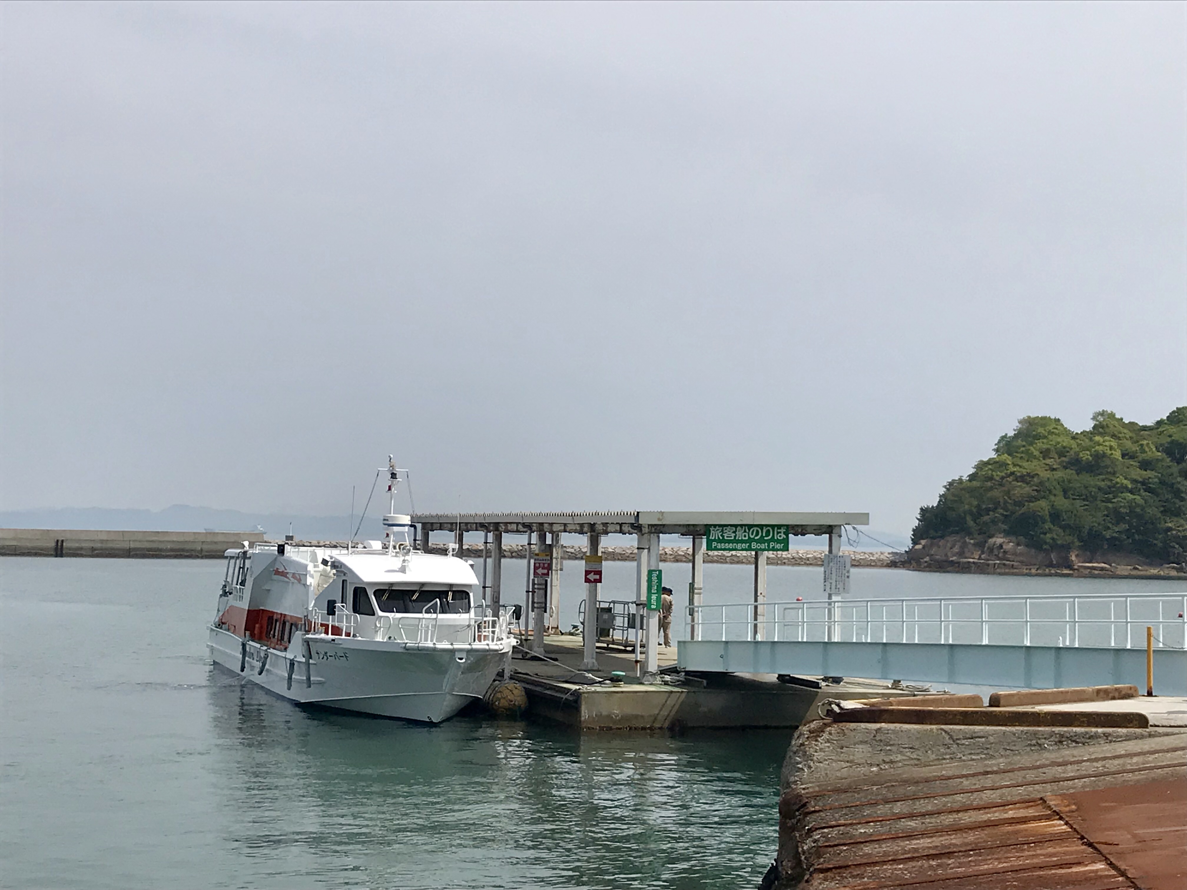 À notre arrivée à Naoshima, une citrouille rouge de Yayoi Kusama (celle qui expose à Shanghai) souhaite la bienvenue aux passagers des traversiers et aussitôt à terre toute la structure d'accueil est orientée vers le tourisme artistique. Il est très facile de s'orienter et un guide très bien fait contient toutes les infos sur les activités et les horaires de bus et de traversiers et des préposés sont localisés aux endroits stratégiques pour aider les visiteurs.